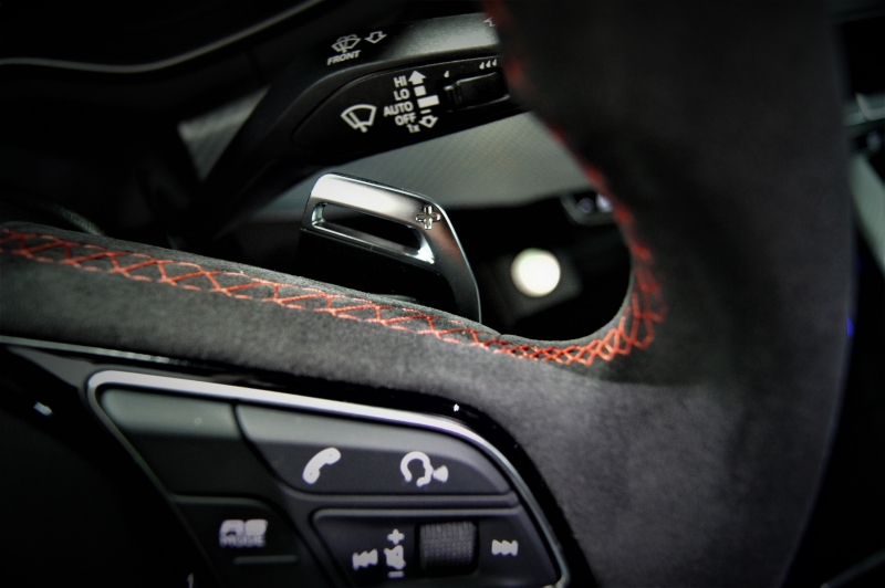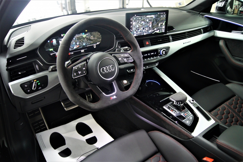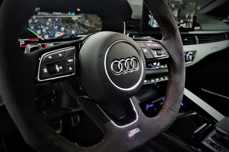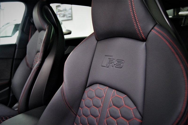 Extres: Sostre panoràmic obert – Pack Dinàmic RS – Pack disseny en vermell RS - Navegador GPS - Climatització automàtica - Climatització 3-zones - Vidres elèctrics – Il·luminació interior ambiental LED amb canvi de color – Audi Phone Box (Carregador telèfon inalàmbric) – Radio digital DAB – 2 lectors USB - Bluetooth - Color interior en cuir negre amb costures en vermell – Seients amb disseny tipus niu d’abella - Seients elèctrics – Seients amb sistema de massatge - Isofix - Sensors pluja - Sensors llums – Fars Matrix LED - Llums de posició LED - Llandes 20'' - Alarma - Ordinador d'abord - Vidres tintats amb protecció U.V. - Abs - Sensors aparcament davanters i trasers – Càmera d’aparcament 360º - Pintura metal·litzada - Control tracció - Recolzabraços central davanter i traser - Miralls electrocròmics - Retrovisors elèctrics - Retrovisors plegables – Retrovisors en el color de la carrosseria - Volant multifuncions - Cruise control - Leves al volant - Suspensió adaptativa - Enllumenat de direcció - 4 tipus de conducció - Portó maleter elèctric – Portó maleter amb sensor d’obertura - Keyless&Go (obertura i arrencada sense clau) - Sistema de so BANG&OLUFSEN Premium Sound System – Control per veu – Assistent col·lisió – Assistent conducció – Assistent d’estacionament - Fre d’estacionament elèctric – Trucada d’emergència – Control pressió de neumàtics – Detecció d’angle mort als retrovisors – Assistent actiu direcció – Moldures interiors en alumini – Start-Stop – Kit primers auxilis al maleter – Logotip Audi Sport retroil·luminat a les estriveres – Virtual Cockpit – Audi Hold Assist – Pinces de fre en vermell RS...
