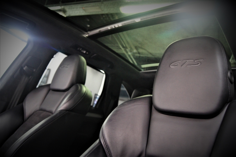 Extres: Sostre panoràmic obert - Navegador GPS - Climatització automàtica - Climatització bi-zona - Vidres elèctrics - Telèfon – Sistema de so BOSE - Carregador CD'S - USB - Bluetooth - Color interior en cuir I alcàntara negre – Logotip GTS gravat als reposacaps - Sostre en alcàntara - Seients elèctrics - Seients amb regulació lumbar - Seients calefactables davanters – Isofix - Sensors pluja - Sensors llums - Bi-Xenon - Llums de posició LED - Rentafars - Llandes 20'' en negre - Alarma - Ordinador d'abord - Vidres tintats amb protecció U.V. - Cortines de privacitat elèctriques als vidres trasers - Abs - Sensors aparcament davanters i trasers – Càmera d’aparcament - Pintura metalitzada - Control tracció - Recolzabraços central davanter i traser - Miralls electrocròmics - Retrovisors elèctrics - Retrovisors plegables eléctricament - Cruise control - Leves al volant - Suspensió neumàtica - Enllumenat de direcció – Kit reparapunxades al maleter - Volant regulable - Reductores - 3 tipus de conducció - Portó maleter elèctric – Start-Stop – Fre d’estacionament elèctric – Detecció d’angle mort – Pinces de fre en color vermell Porsche – Porsche Sport Chrono – Sistema d’obertura d’escapament – Cortina eléctrica al sostre...
