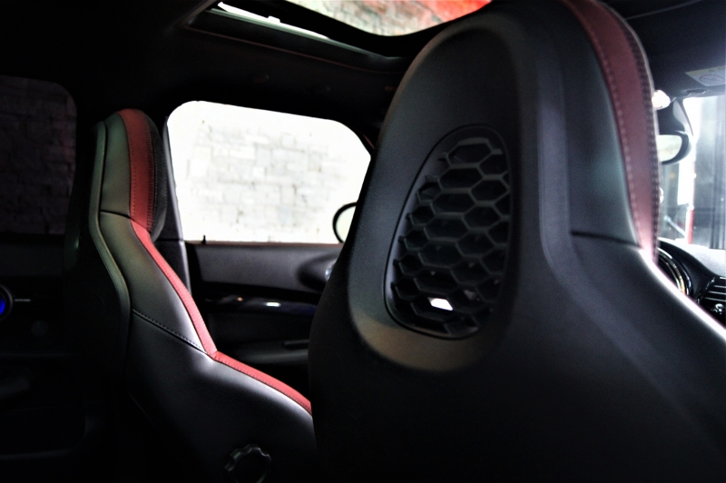 Extres: Sostre panoràmic obert - Navegador GPS - 3 tipus de conducció – Climatitzador bi-zona - Vidres elèctrics – Telèfon - USB - Bluetooth – Sistema de so HARMAN KARDON – Mini Connect – Pantalla tàctil - Control per veu – Color interior en tela negre/vermell amb logotips JCW – Seients calefactables - Sensors pluja - Sensors llums – Bi-Xenon – Llums de posició LED - Fars amb llums antiboira - Llandes 19'' - Alarma - Ordinador d'abord - Abs - Control tracció – Control pressió neumàtics - Recolzabraços central davanter i traser - Miralls electrocròmics - Retrovisors elèctrics - Retrovisors plegables elèctrics – Volant multifuncions - Cruise control adaptatiu - Sensors aparcament davanters i trasers – Càmera d’aparcament - Pack il·luminació ambiental interior – Start-Stop – Keyless (Arrencada i obertura sense clau) - Leves al volant – Sistemes d’ajut a la conducció – Fre d’estacionament elèctric –Vidres tintats amb protecció U.V – Moldures interiors en negre piano – Acabats exteriors en contrast vermell – Head Up Display – ISOFIX – Llums de cortesia als retrovisors amb logotip de la marca....